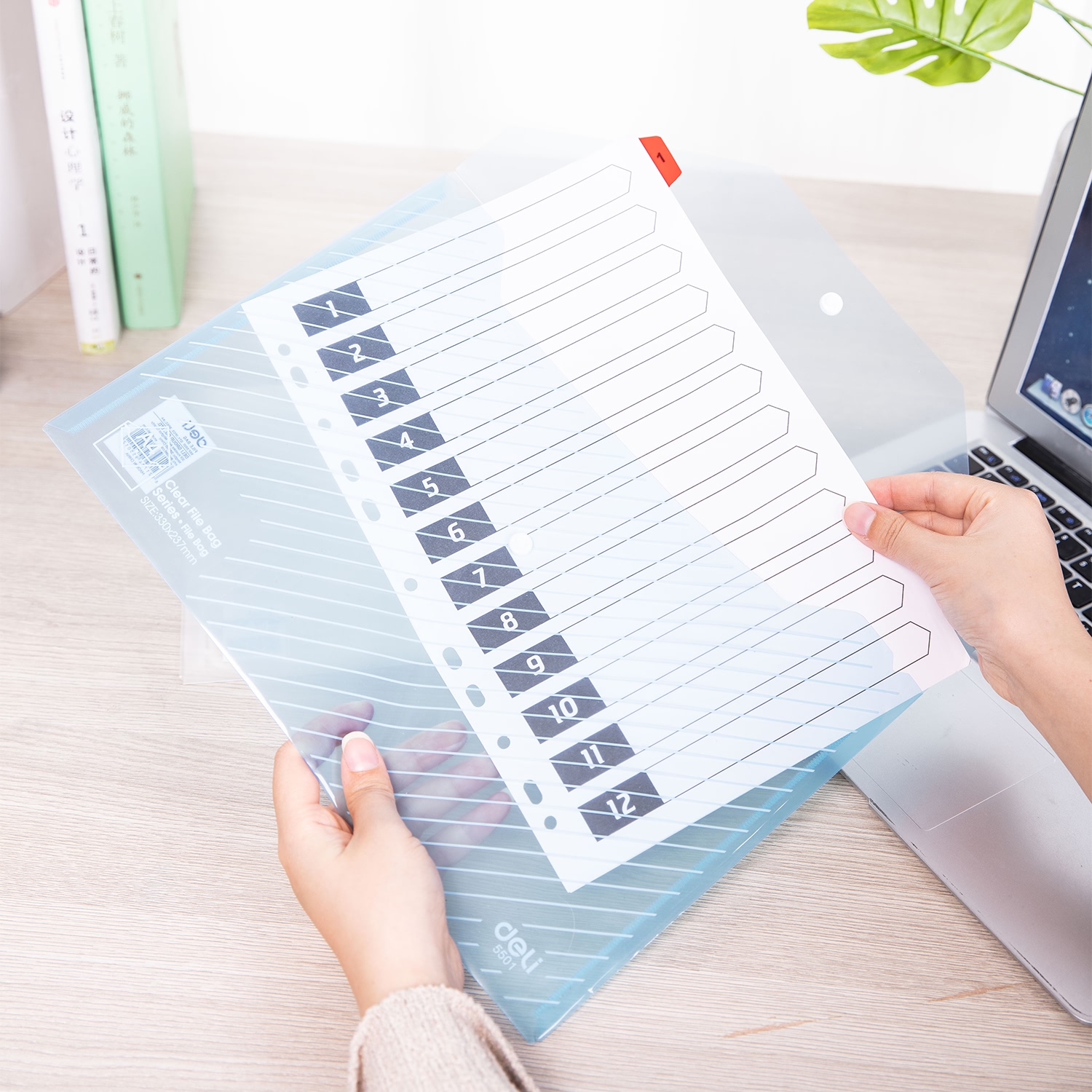 Конверт на кнопке Deli E5501 A4 полипропилен 0.18мм ассорти