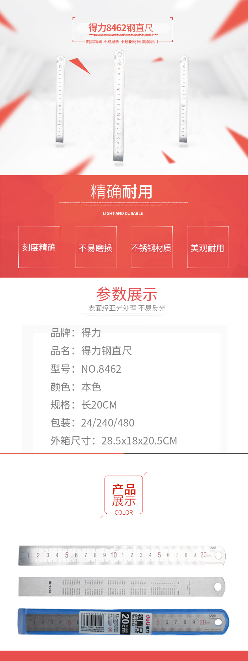 Линейка Deli Essential Metal 8462 сталь нержавеющая дл.20см ассорти