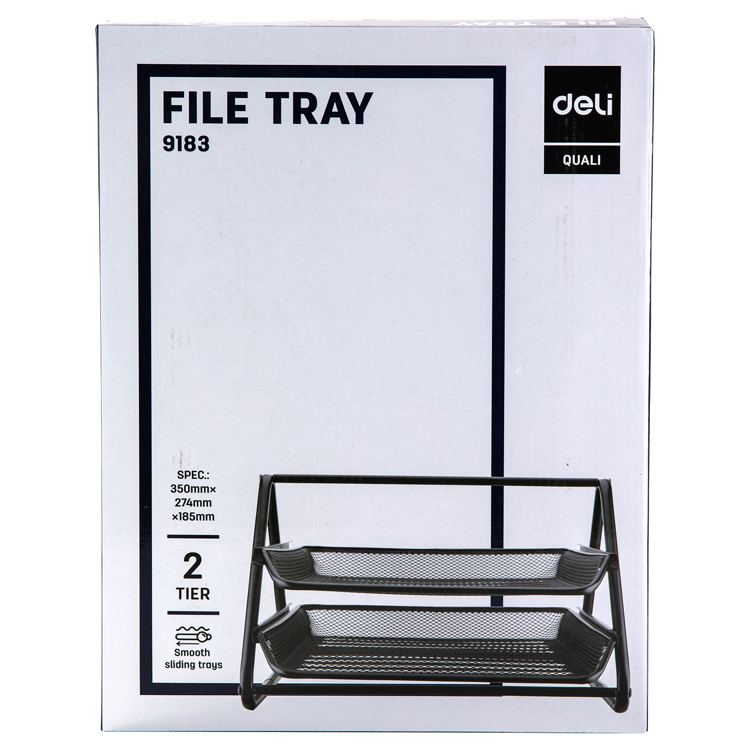 Лоток горизонтальный Deli E9183 для бумаг 350х274х185мм 2 разделителя черный металл сетка