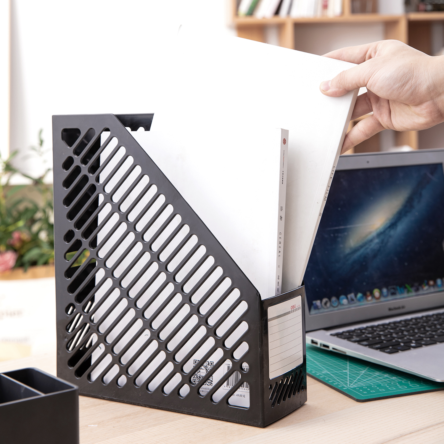 Лоток вертикальный Deli E9841 для бумаг 259х90х295мм 1 разделитель черный