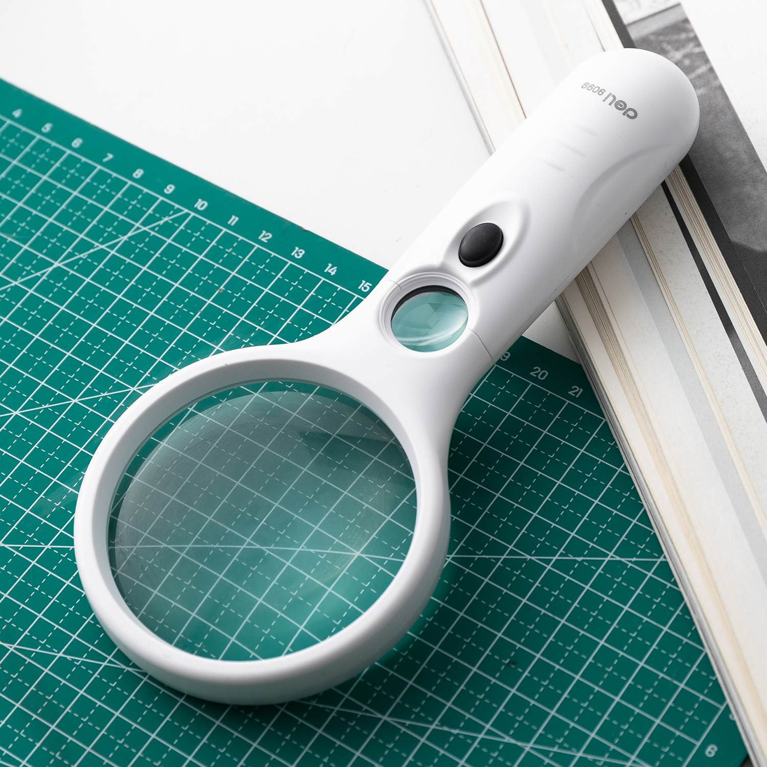 Лупа офисная Deli E9099 Pro d=75мм x3 LED подсветка белый пластик ABS (упак.:1шт) блистер