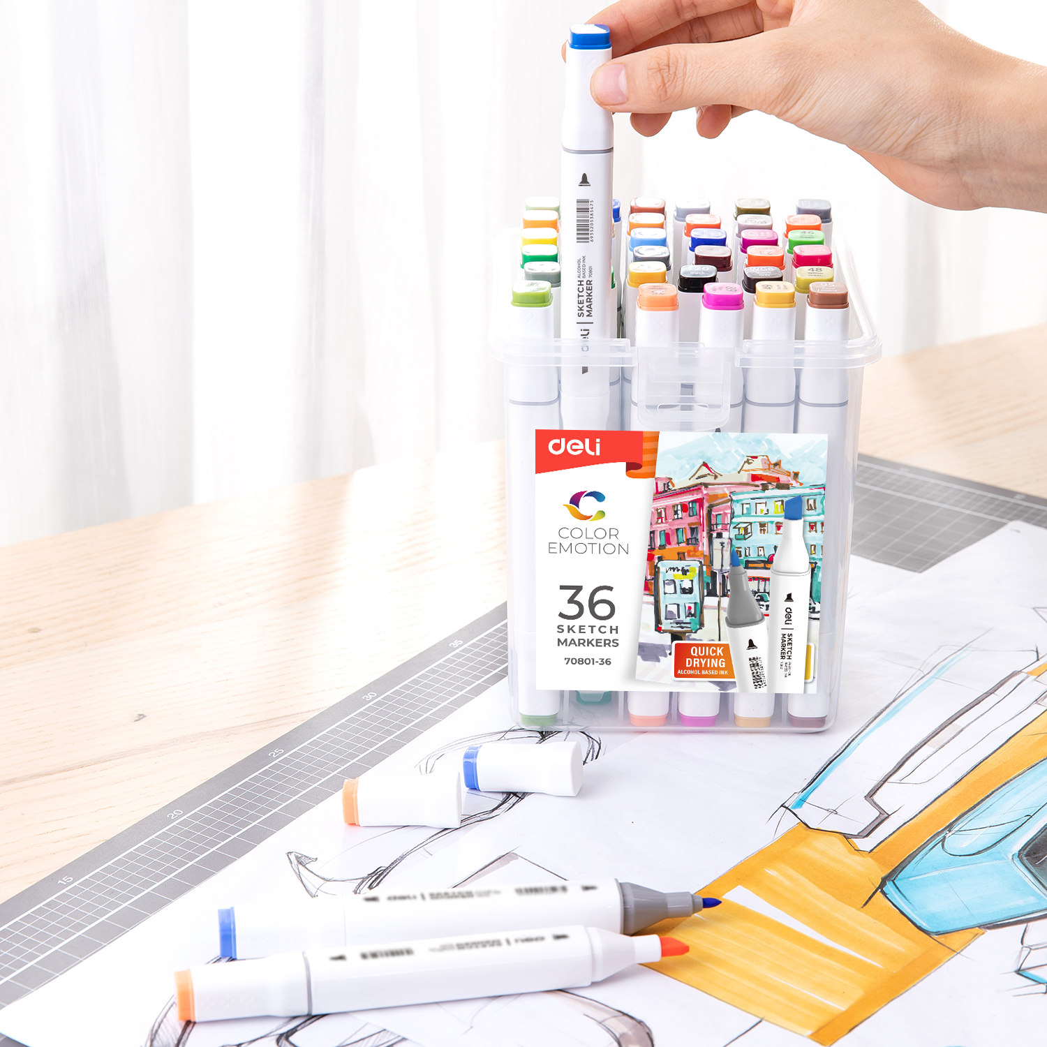 Маркер для скетчинга Deli E70801-36 36цв. двухстор.