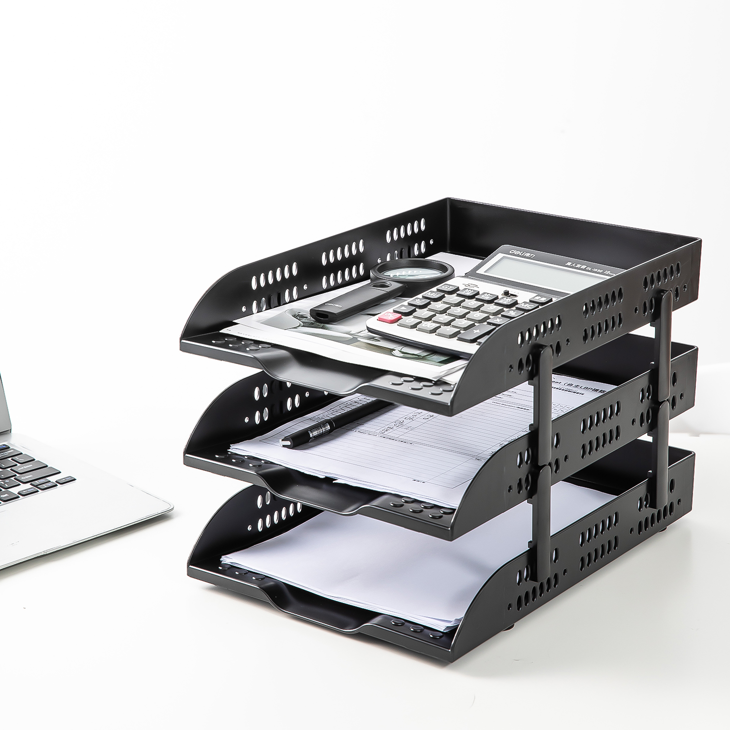 Набор лотков горизонтальный Deli E9215 3отд. A4 черный пластик