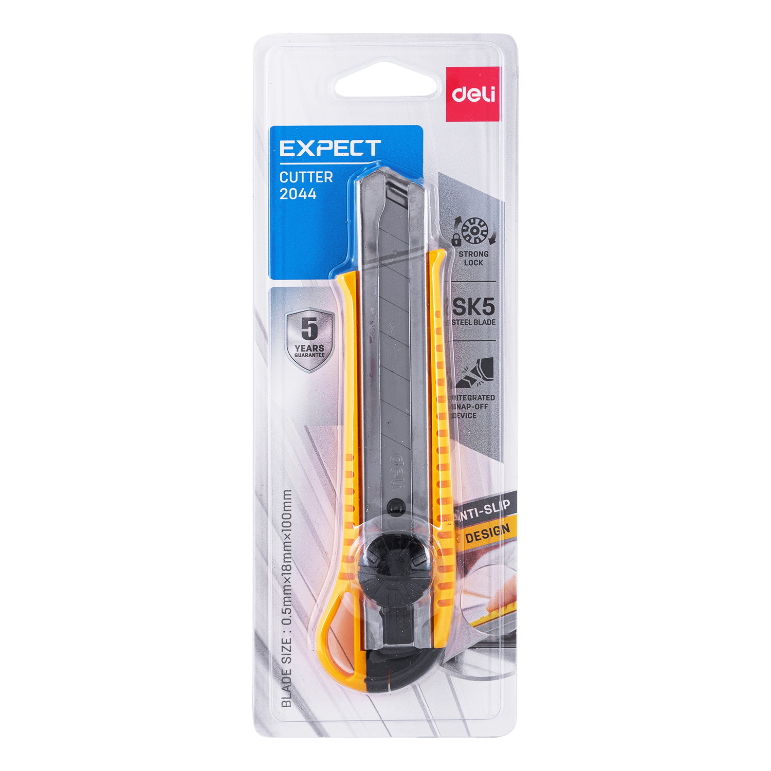 Нож канцелярский Deli E2044 шир.лез.18мм фиксатор усиленный сталь ассорти блистер