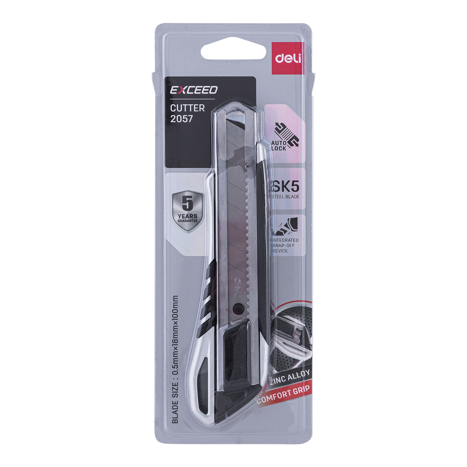 Нож канцелярский Deli E2057 шир.лез.18мм сталь серый/черный блистер