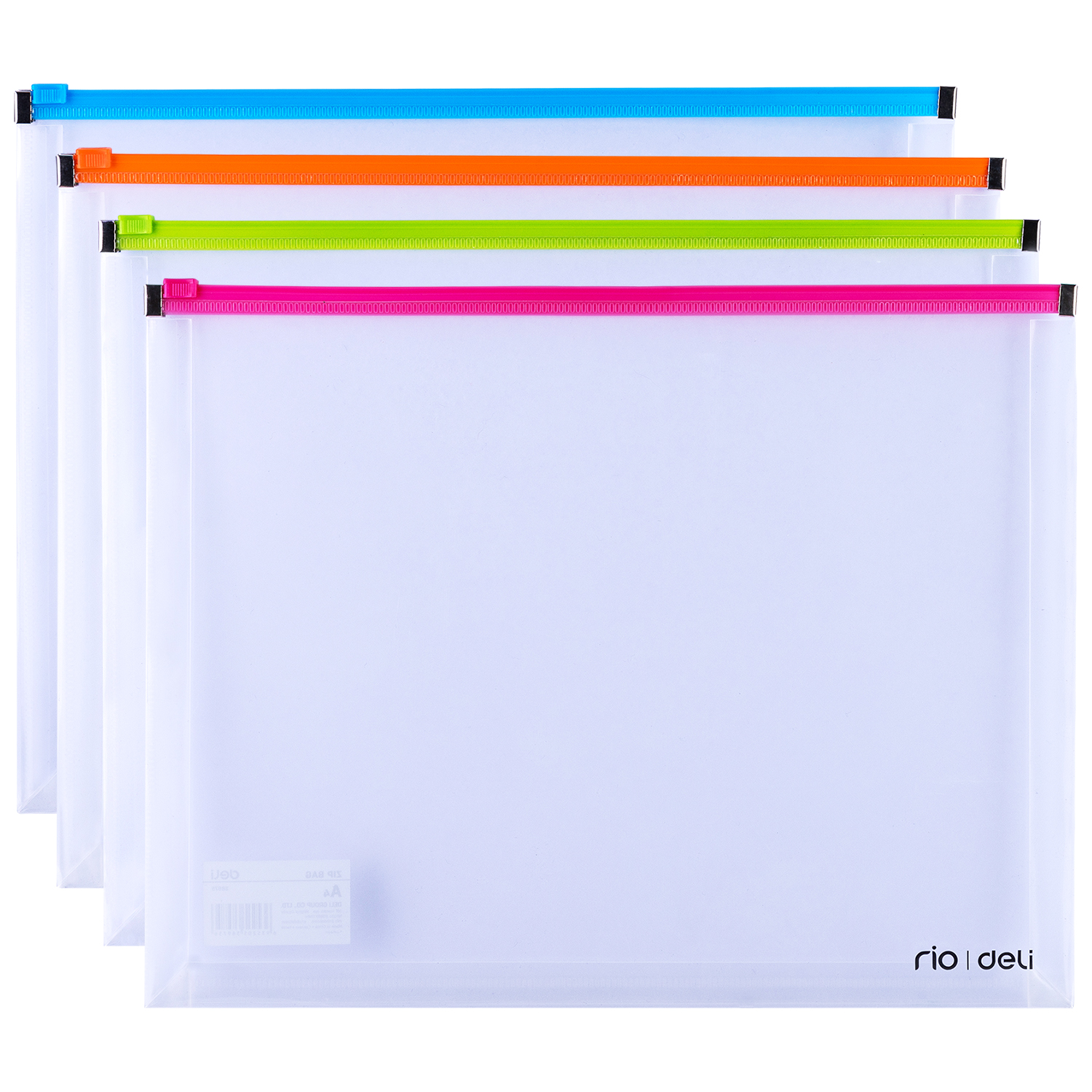 Папка на молнии ZIP Deli E38975 A4 полипропилен 0.18мм карм.для визит. цвет молнии ассорти