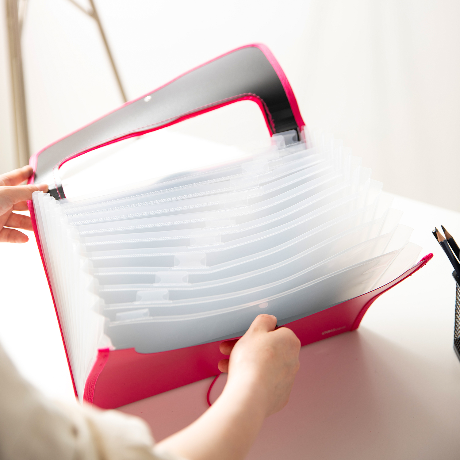 Упаковка: 13 Pockets; Stitched fabric edging; Elastic closure;