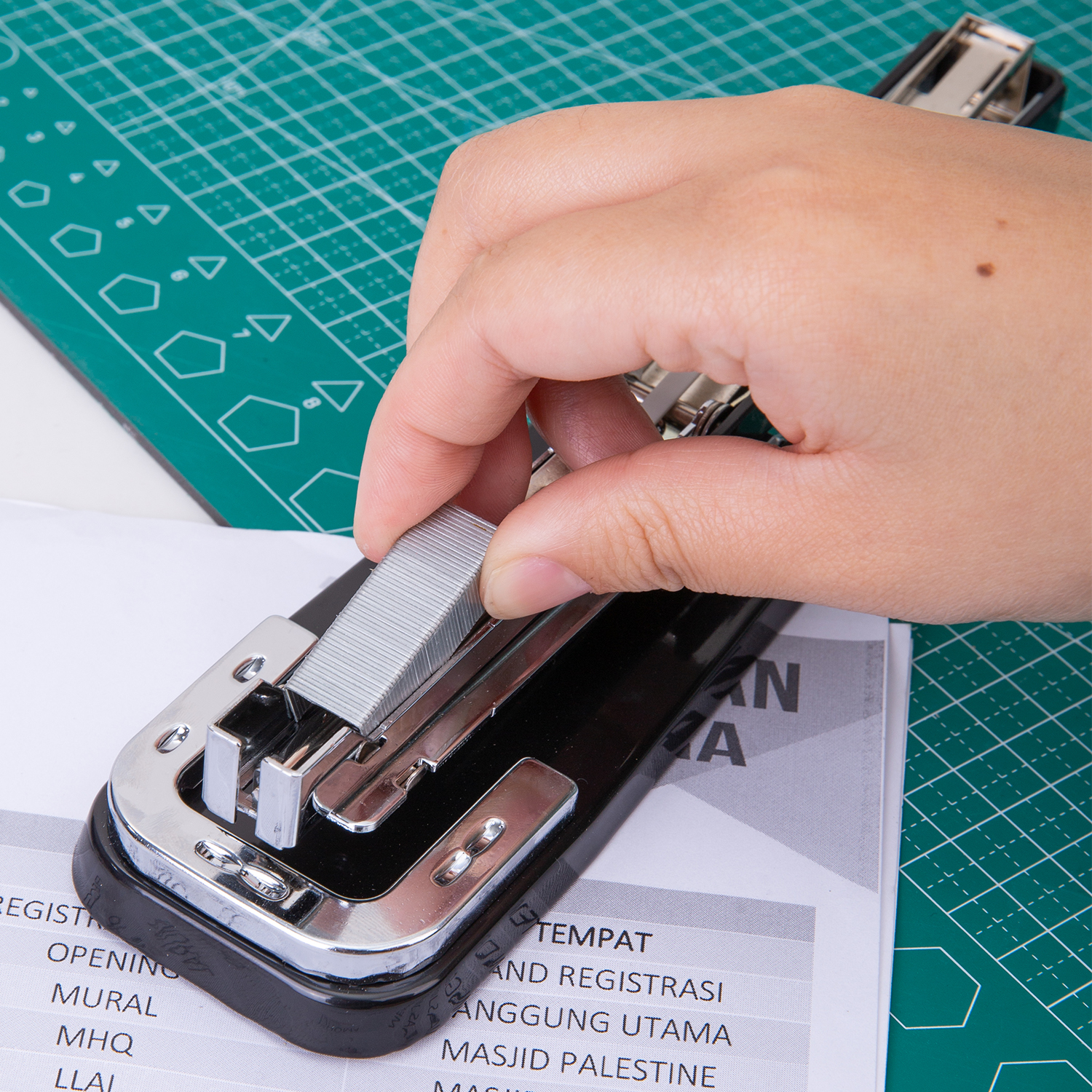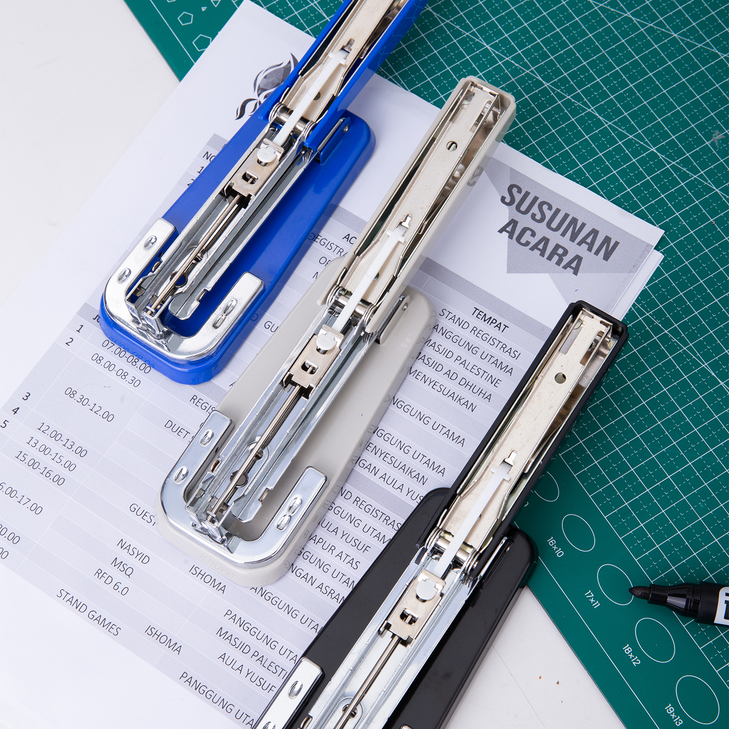 Упаковка: Half strip stapler; 24/6 or 26/6 staple; Plastic pull bar; Swivel stapling in 3 direction;